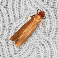In tegenstelling tot de voedselmot heeft de kledingmot een pluizige kop en een goudbruine kleur.