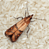 Voedselmotten hebben een karakteristieke bruine kleur. In tegenstelling tot kledingmotten zoeken ze voedsel in keukenkastjes om zich voort te planten.