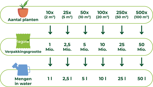 Let op: Voor gebruik in een grote plantenbak raden we aan om vanwege de grotere larvendichtheid de dubbele hoeveelheid per vierkante meter toe te passen.