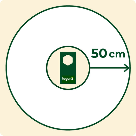 Elke strips heeft een bereik van ca. 1 m². De sluipwespen bewegen zich tot 50 cm in elke richting van de strip.