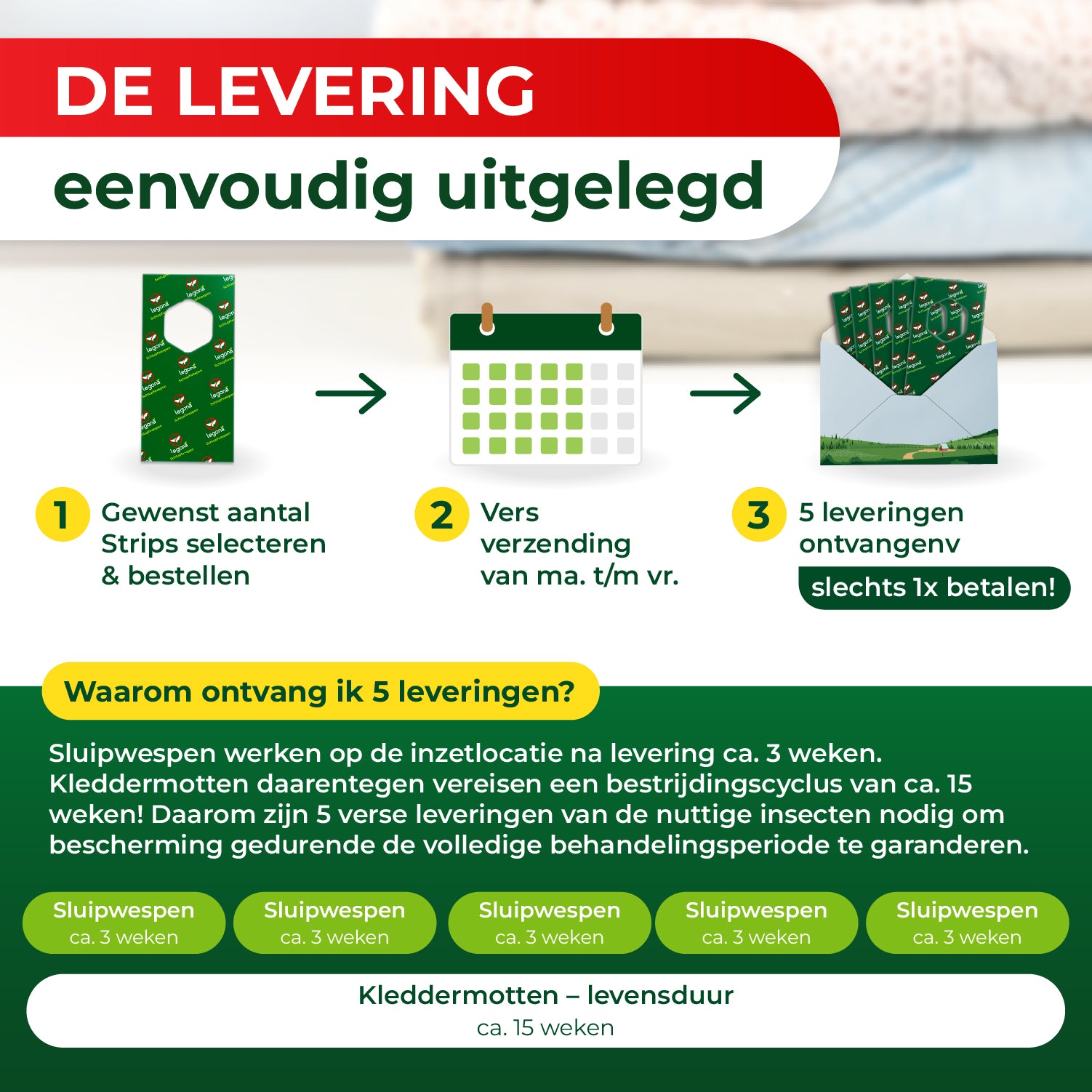 Heb je al een 15-weken durende behandeling tegen kledingmotten doorlopen en wil je extra zekerheid?